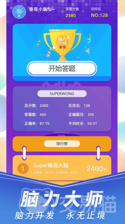 作为一个趣味的答题游戏,里面会设定大量的关卡供玩家挑战,每天还会更新一些全新的题目,玩家每天进入游戏之后,都可以挑战这些新的题目来证明自己,这些题目的类型非常多,大家可以根据自己的需求自由选择,通过答题能让思维变得更加清晰,另外通过分数的不断积累,在排行榜上还能不断刷新名次,可以向所有的游戏爱好者展现自身的能力,也可以通过这种方式证明自己。