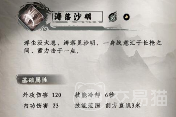 喜欢枪法的可以选择一字定海枪,这是一个入门的武学,每一次使用都能带来大量的攻击伤害,可以用招式涛落沙明,在自身的前方展开攻击,也可以借助潮来潮去,攻击角色周围的其他敌人,另外也可以利用风平浪静,对前方3米范围内的对手开启蓄力攻击,在拳法武学中,爻光古拳是相对来说比较适合新手的,可以用雷鸣破岳攻击直线距离内的对手,天地齐明则是可以攻击前方扇形范围内的敌人,星蕴天机是招式的被动效果,使用之后可以恢复真气和气血。