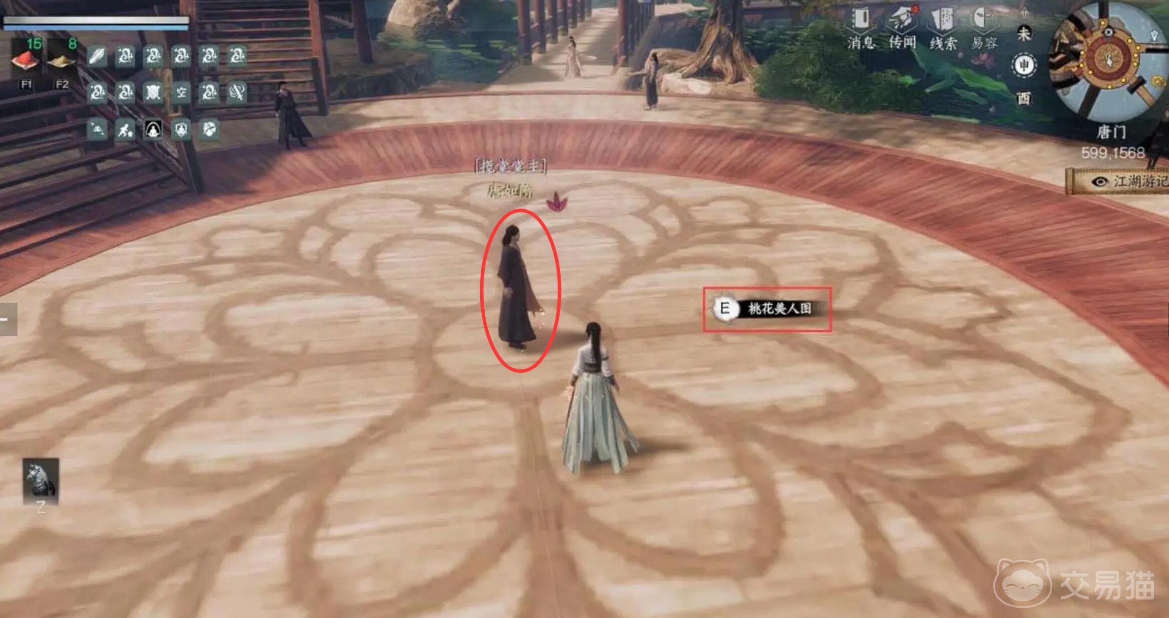 桃花美人图:唐门(599.1568)有个发光的宝箱,打开后得到桃花美人图。带着图到莲花渡(684.1577)找王掌柜,对话时不断选择加价,加到4000铜钱时会触发剧情,钱被小偷偷走但任务依然算完成,获得称号“冤大头”,装备后买东西会便宜5%。