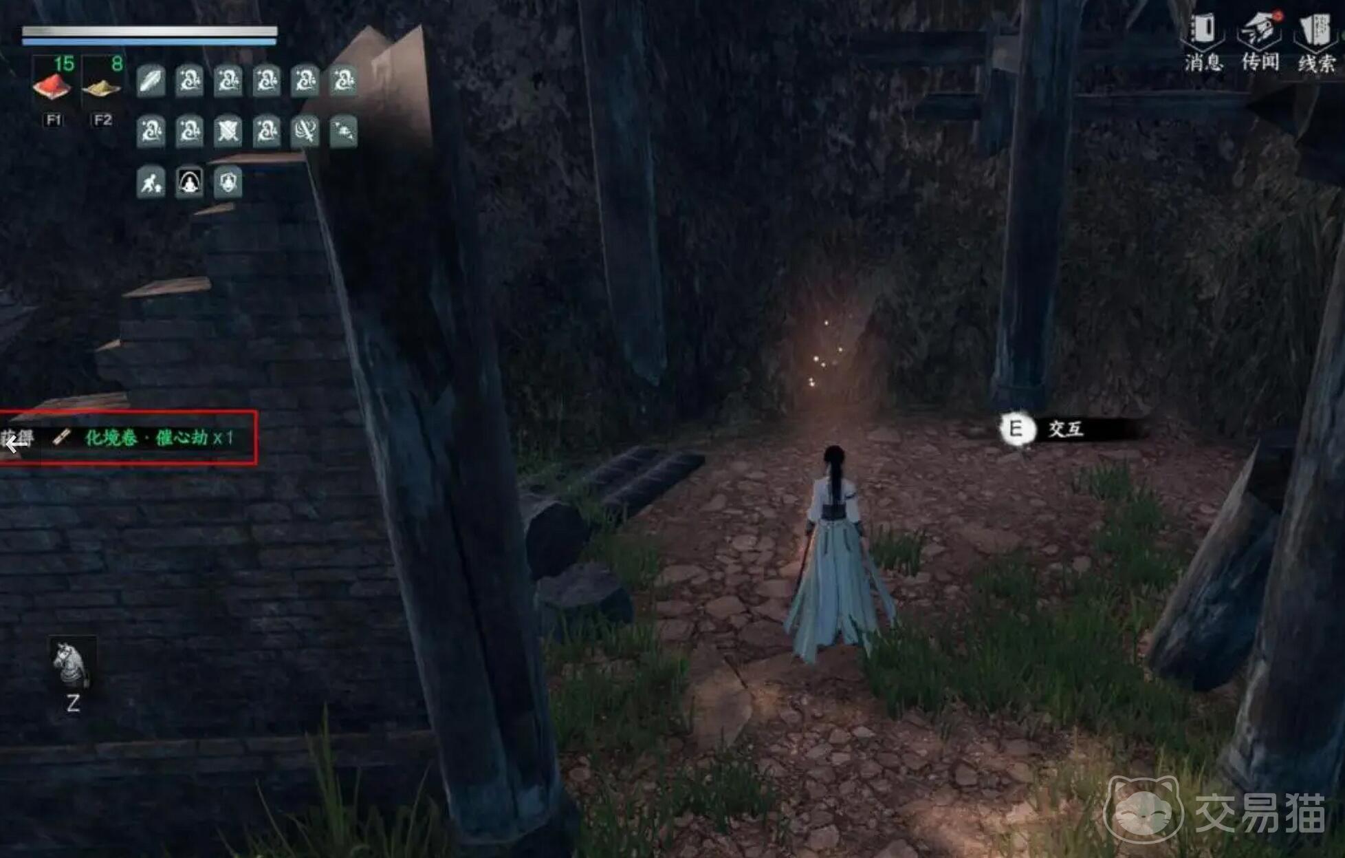 灭门之仇:在(987.1679)附近自动触发剧情,看到一个叫敛梦的女子被蒙面人袭击。选择出手制止并击败蒙面人,对话后接取她的委托,按照任务指引完成后获得“化境卷·风挑浪”,这个道具可以用来突破刀法境界。