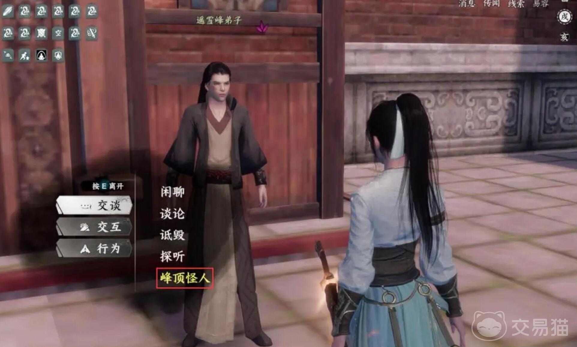 峰顶怪人:任务的接取地点在遥雪峰最高处的破庙内,玩家需使用轻功(至少2段跳)登上峰顶,与坐在篝火旁的白发老者对话。老者会提出三个谜题,正确答案依次为“雪莲花”“寒潭底”“无字碑”,全部答对后获得“残缺的地图”。击败洞内的“雪妖”BOSS后,宝箱中可获得“玄冰诀”心法秘籍及5个“雪莲膏”。