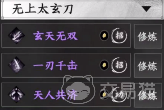刀法一直是游戏里比较厉害的一个,也是很多人在这个拟真江湖世界会选择的,通过刀法更能有一种闯荡江湖的体验感,游戏里的刀法种类非常多,会根据战斗力的不同分成各种不同的颜色,常规的刀法没有太大的区别,如果想要有更强的战斗能力,就需要选择紫色刀法或者金色刀法,这些刀法的战斗力都会比较强,就比如无上太玄刀,这是一个攻击力非常强的刀法,在对战的时候,可以使用一技能玄天无双直接把对方聚集到一起,接着就会发起群体进攻,每一次进行攻击,都可以让对方所有成员受到伤害,二技能名叫一任千击,会根据在游戏里挨打的层数增加伤害。