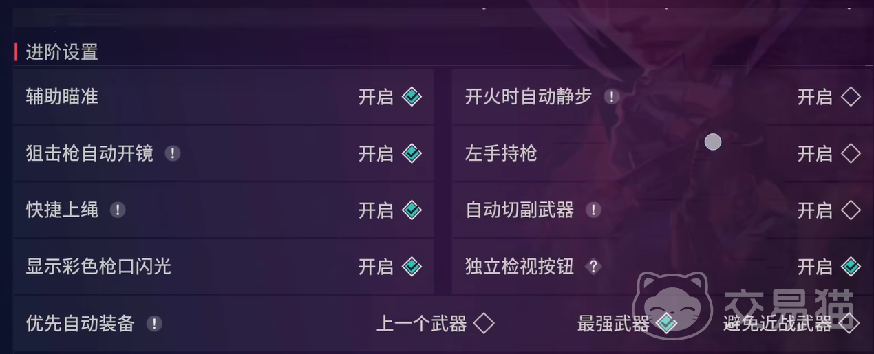 此外,“智能开火按钮”设为“集成到右开火”也是一个很实用的选择,它可以让你在不需要特别去点击的时候,自动完成射击,避免了错失机会的尴尬。