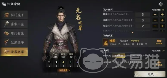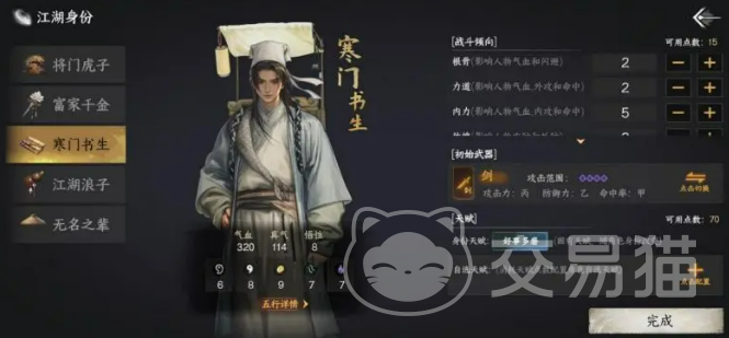 首先要提到的,是“将门虎子”,这一身份适合那些喜欢传统武侠故事的玩家。作为名将之后的你,从小便肩负着家族的重担,天生就是江湖中的璀璨星辰。但命运却往往出人意料,一场意外让你流落江湖,成为了一名少年侠客。尽管你有着济世之心,依然难逃权贵的嫉恨与打压。正当你命悬一线时,灵均出手相救,为你续命。至此,你开始踏上了不同寻常的江湖路。你可以辅佐君王,青史留名,也可以选择割据一方,霸业终成,甚至在乱世中归隐田园,寻找属于自己的安宁。每一条路线都有其独特的挑战与成就感,能否复兴家族,最终都由你来决定。