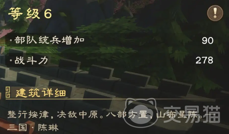 防御工事的建设就可以给大家的城市增加更多数值,城防值关乎主城与城墙的耐久度,坚固的城墙能让侵略者话费更多时间攻城,而周围的角楼则是反击的建筑,在遭受攻击时自动激活,其实这里建议大家选择与盟友共建防御圈,借助联盟互助机制形成更高的防御数值,而都尉府与四方馆的组合,前者提升集结部队容量与掠夺上限,后者增加求助次数与援军规模,这样的建筑让联合作战变得更有效果。
