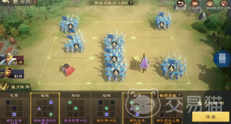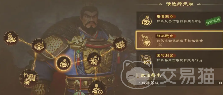 搭配马超组成割须弃袍羁绊时,可选择励军+韬怒的组合,既增强续航又保证控制稳定性,方圆阵则侧重环境适应,其释放技能时的额外缴械判定,能在混战中扩大控制范围,强袭+制动+御策的配置,可最大化利用阵地优势,适合正面迎击多种兵种组合,天赋树的选择需兼顾控制强度与生存能力,定韬兵略提供的抗震率加成,确保曹操在敌方控制链依然有用,掌控之阵是可以激活的一个效果,只要激活身上有控制阵法的士兵将获取输出上面的提升,这与曹操的控制定位完美契合,后续的强而避之和避其锋芒双管齐下,大幅提升主动技能抗性,防止关键技能被打断,最终天赋可根据实战需求灵活选择,蓄势待发延长控制时间适合持久战,而蚕食鲸吞则能加快对手兵力损耗速度。