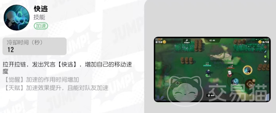 一技能快逃,该技能激活后大幅提升自身移动速度,觉醒状态下持续时间延长的特性,让使用者拥有更长的战略机动效果,更为关键的是天赋强化后的加速效果可惠及全队成员,这使得狗卷棘在团队推进、转线支援或紧急撤退时都能发挥关键作用,当己方队伍因残血急需撤离时,狗卷棘开启加速带领全员脱离战场,或是趁敌方不备,突然加速突袭抢夺地图资源,这种战术执行力正是其价值的体现,在实战中,合理把握加速时机往往比单纯堆叠冷却缩减更为重要。