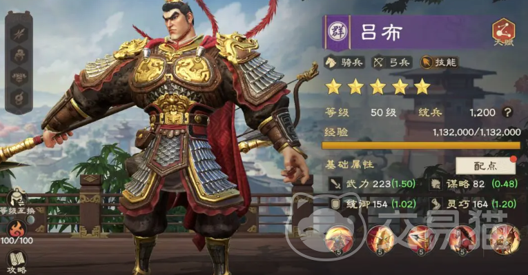 吕布是技能队当中的代表角色,1.5的武力成长很夸张,这为其主动技能提供了毁灭性的输出保障,除了不错的攻击力,吕布的统御成长也超越平均水平,配合被动提供的增伤与暴击加成,使其成为当之无愧的主C候选,他的技能组设计极具侵略性,冲锋路径上的单位将遭受连续打击,最终还会被击退并附加额外伤害,更值得一提的是,技能自带的治疗效果极大提升了部队的持续作战能力,这种自给自足的特性让吕布领衔的队伍始终保持着旺盛的战斗欲望。