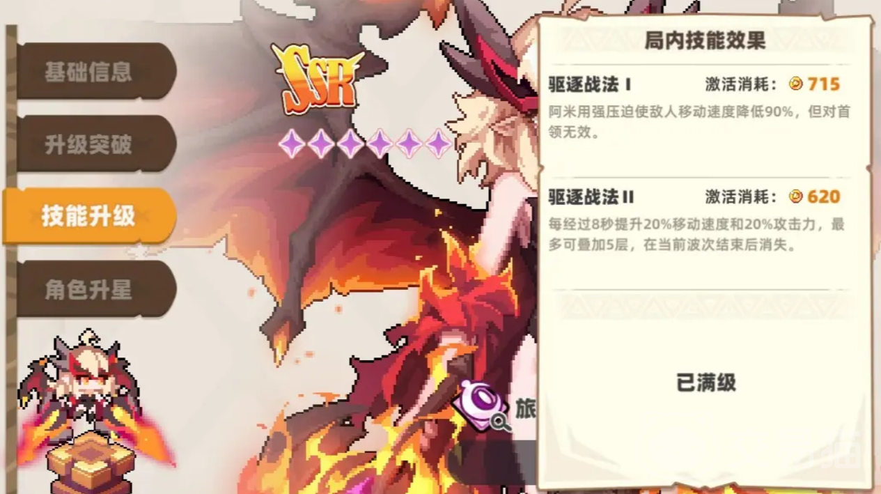 阿米在前期就会直接赠送,虽然是赠送角色,但是她非常好用,攻击是全图的完全不用担心打不到敌人的问题,她的“驱逐”能让敌人的速度大幅度,并且还能根据时间来提升自己的移速和攻击力,各种关卡都好用,加上高频率的攻击还能应对每次伤害限制1的宝箱怪,拥有后一定要优先培养。