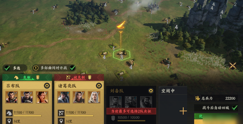 谈到资源地攻坚,最为核心的要义莫过于双管齐下的战术配置,每场资源争夺战允许最多两支军队协同作战,所以主攻队当仁不让地由弓兵担当主力,这类部队天生具备超远射程与爆发性输出,配合连射、穿刺等强化技能,能在安全距离对守军造成打击,而承伤队则需根据现有武将池灵活调配,或是坚如磐石的盾兵阵型硬扛伤害,或是机动性强的骑兵迂回牵制,其核心使命是为主攻队争取宝贵的输出,值得庆幸的是,唯有成功占领资源地才会扣除30点体力,若不幸失败,这份珍贵的体力将被完整保留,配合游戏独有的PVE无重伤机制,即便遭遇挫败也能迅速重整旗鼓,无需漫长等待恢复时间,这也提升了战术容错率。