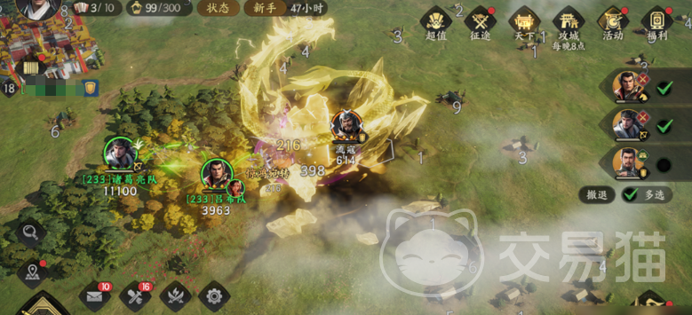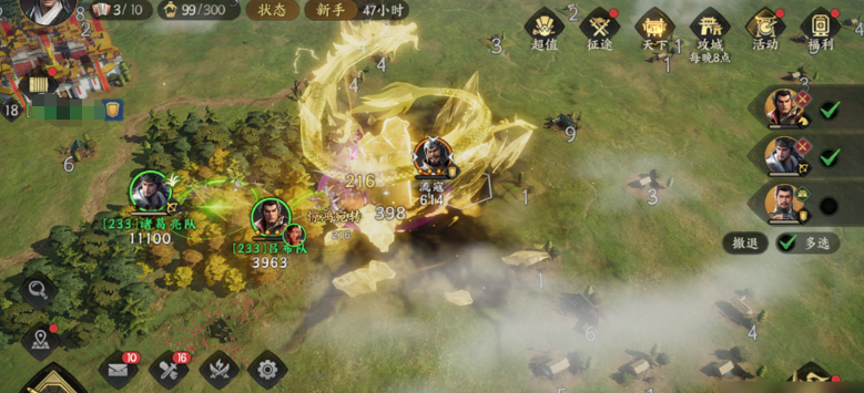 这里游戏贴心设置了自动攻城功能,只要目标哨塔已在联盟掌控之下,主公便可提前部署部队进入待命状态,战斗一开,这些蓄势待发的队伍将自动冲击城门或主殿,遇敌反击亦能自主应对,除非主公亲自调整部署,否则他们将始终忠实执行既定指令,这样智能化的设计,让大规模协同作战更好玩,而且这里联盟强弱系于声望高低,而城池正是声望的主要来源,从初期的江东、荆南六州,到中期的江汉、关中要冲,直至末期的全服总排名,三阶段结算都是会有不同奖励的,每当天下大势推进至关键节点,便是联盟展现实力的时刻啦,在有占领之后,大家可以在周围选择三倍速扫荡内城资源地,既能获得三倍经验加速成长,又能规避外城混战的风险,避免被其他玩家再次夺城。