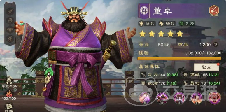 董卓,这位乱世枭雄拥有很高的智谋与统御才能,尤为突出的是他具备为队伍施加异常状态从而获取增伤效果的特殊能力,加之较高的生存韧性,使他得以与其他依赖异常状态的核心武将默契配合,每当董卓积攒足够怒气发动大招,就会朝着前方扇形区域内的敌人,使他们遭受持续性的伤害,并在牵引过程中逐渐失去阵型,待牵引完毕,董卓紧接着奋力挥剑,给予单体敌人沉重一击,其被动技能是每当队伍中的武将释放技能之后,便能向敌方施加中毒效果,而暴虐无道这一被动更是将异常伤害推向极致,大幅拔高此类伤害的数值,尽管基于异常状态构建的体系在短时间内的爆发力或许不及常规技能流,但如果战斗时长得以延长,依靠层层叠加的异常效果,完全能够积累起很高的伤害量。