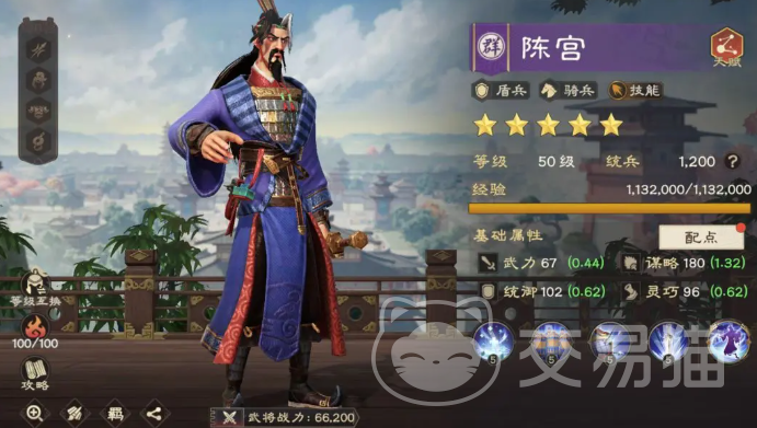 陈宫尽管只是一张紫卡品质的角色,但其作用却不容小觑,陈宫擅长群体治疗,能够在关键时刻稳定队伍的血线,他的招牌技能天地不仁覆盖范围内的队友皆能享受到轻伤恢复的效果,由于陈宫自身的谋略成长颇为出色,所提供的治疗效果相当可观,除此之外他的被动技能还能为队友带来25%的技能增伤,并且提升队伍的抗震率,这两项属性对于减轻长期作战带来的损耗至关重要,无论是持久战还是拉锯战,陈宫的存在都能让队伍更加从容应对,即便到了游戏后期,多高级橙卡涌现,陈宫依然可以凭借其实惠实用的特性,作为过渡卡牌长期活跃在战场上。