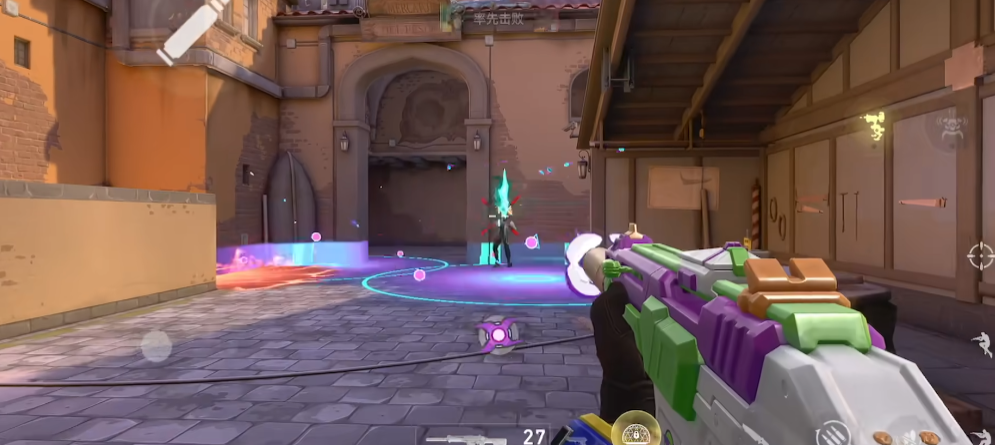 作为齐乐最具标志性的技能,哨戒炮台以其免费且高频的使用特性,成为贯穿整局游戏的核心战术效果,该炮台拥有180°的扇形攻击范围,但需特别注意其侧面与背面存在的致命盲区,这一设计决定了玩家在部署炮台时必须精准把控朝向,任何细微的角度偏差都可能导致防御效能大打折扣,实战中,炮台的价值远超单纯的火力输出,它更是获取敌方动态的关键情报站。尤其在防守回合与守包阶段,将炮台置于包点视野开阔区域,配合自身依托掩体的站位,可构建起经典的三角战术阵型,当敌人进入包点范围,炮台会第一时间锁定目标位置,强制暴露敌方动向,同时吸引对手火力集中于固定点位,此时玩家便可利用敌人的瞄准间隙,从侧翼发起反击,形成以逸待劳的战术优势,这种诱敌显形的打法是很厉害的。