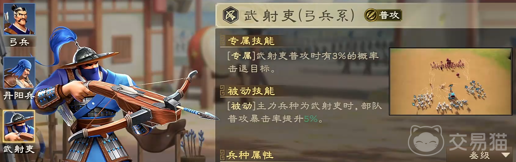 均衡持久弓:太史慈+孙尚香阵容构成:主将:太史慈副将:孙尚香兵种:武射吏推荐阵法:车悬阵/风扬阵阵容机制:太史慈提供部队倒戈(吸血)效果,与孙尚香的穿透率形成双重续航体系。在持久战中,队伍能边输出边恢复伤兵,实现近乎不死的持续作战能力。虽然瞬间爆发不如兄妹弓,但整体输出更为平稳,对抗高血量敌人时表现优异。