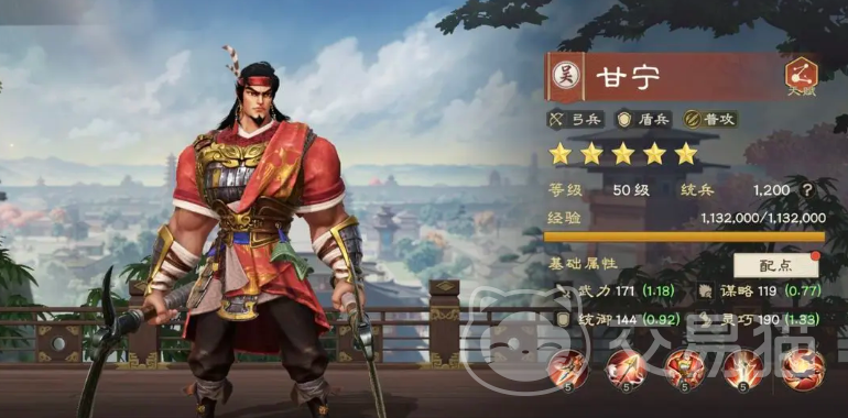 最后介绍的是甘宁,这位勇士以其出色的自我强化能力和远程作战优势脱颖而出,他的雄戟万舞技能极具视觉冲击力,使用的时候会向敌人丢出手中的双戟,这两把双戟会对敌人造成持续性的伤害,短暂停留片刻后,又会再次发起二次打击,而且攻击距离较远,让他能够在相对安全的位置对敌人发起进攻,提高自己的生存几率,发动该技能后,还能激活被动效果,为部队添加连击状态,进一步提升输出效率,直射凌霄技能则专注于防御端的加强,大幅提升部队的防御力,其他被动技能还包括攻击伤害与暴击伤害的提升。