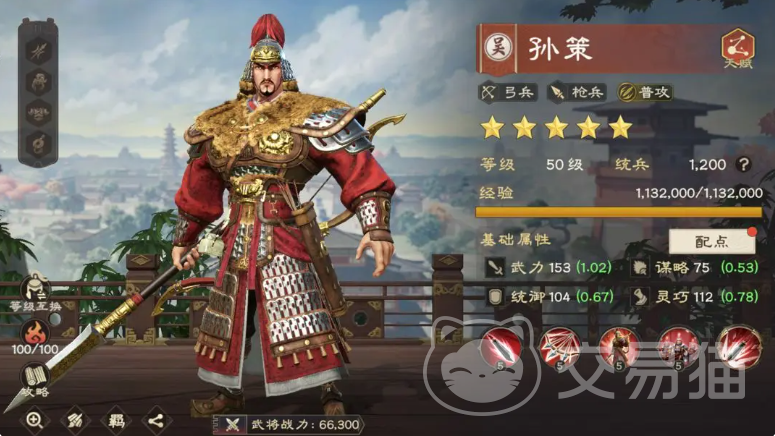 孙策作为一位紫将,因其极易觉醒的特性,成为了玩家们前期构建普攻流阵容的首选搭档,他的长锋撼地技能会在投掷出的长枪落地后,在周围掀起一阵灼热的风暴,使附近的敌人陷入3秒的灼烧状态,他的被动技能能够提升所率领部队的普攻暴击伤害,最高可达60%,而猛锐技能则关注部队的整体健康,每当普攻造成伤害后,恢复部队伤兵的几率会上升12%,这一特性使得队伍的兵力始终保持在一个较高的水平,减少了因伤亡过大而导致战力下降的风险。