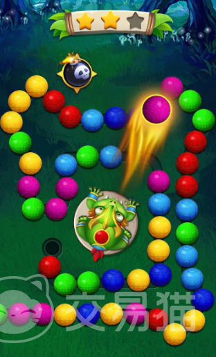 游戏的关卡设计极具层次感,从初期的基础关卡到后期的高难度挑战,形成循序渐进的难度曲线,初期关卡以简单的环形或直线轨道为主,弹珠颜色种类较少,仅需掌握基础的同色消除逻辑即可通关,帮助玩家快速熟悉操作,随着关卡推进轨道逐渐加入多层分叉、动态障碍物,同时特殊弹珠开始出现,此外还有锁定弹珠,会暂时固定周围弹珠的移动速度,为玩家争取更多瞄准与发射时间。
