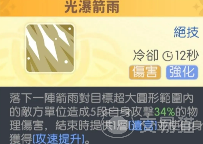 阿波罗的绝技“光瀑箭雨”则是她的一项强大群体输出技能。在技能施放的12秒内,阿波罗会释放多达五段攻击力为34%的物理伤害,覆盖范围广,能够有效打击敌方大范围目标。技能结束时,敌人还会附加“遗言”状态,同时阿波罗自身将获得45%的攻速提升,进一步增强她在接下来的战斗中的输出能力。