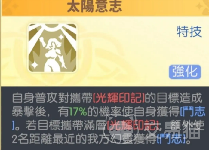 阿波罗的秘技“太阳意志”则赋予了她更强的战斗能力。当她的普通攻击对携带印记的敌人暴击时,有17%的几率获得“门志”状态。若敌人已经堆满了“光辉印记”,则阿波罗还能让两名最近的幻灵队友获得“门志”。这一技能不仅增强了阿波罗自身的战斗力,还能对队友提供有效的增益,为团队战斗提供更多的战略选择。