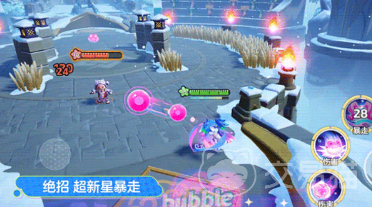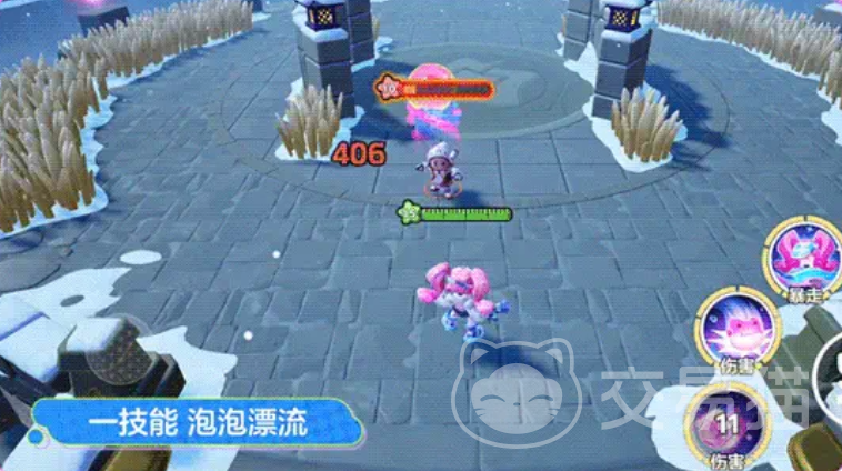 1技能“泡泡漂流”,发射一颗大泡泡,向指定方向飞行一段时间后返回身边,对命中的目标造成伤害和减速效果。2技能“呱呱糖爆弹”,扔出可爱的青蛙糖果包,碰到敌方目标会发生爆炸,若未碰到目标,糖果包则会在存在一段时间后爆炸;