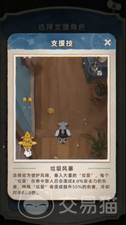 需要注意杰瑞自身不会随时间自动回复能量,每成功发射出一颗水果就能恢复20%,所以玩家要随时丢水果好放出大招,他的专属支援技会让汤姆登场,将杰瑞变成暂时无敌的风箱,吸入大量垃圾,每一个普通垃圾命中敌人会造成8%伤害,特殊垃圾会再造成额外的50%。