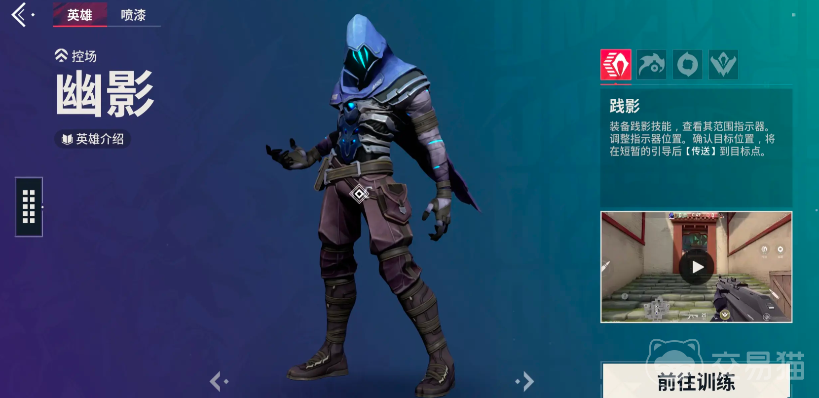 幽影是个具有高机动性的刺客,身形非常敏捷,能在战场中完成快速穿梭,善于突袭敌方后排,能力非常出色。他的技能基本都是具有较强的隐蔽性,突然性的。主动技能让他进入短暂的隐身状态,可出其不意接近对手打出攻击,给敌方生存带来较大威胁,同时敌人也会承受巨大压力;在隐身期间,还能给自身带来移速的加成,进一步增强进阶敌方的能力。在队伍中就是强力刺客,寻找敌方主力输出位置所在,最好是核心输出或者关键辅助,通过突袭将其击杀,对面的战术布局就会被扰乱,整体节奏也会崩盘。他还能利用机动性对视野控制,在不暴露自身的情况下,给队伍提供敌方的信息,让己方能更快速的制定针对性的作战策略。