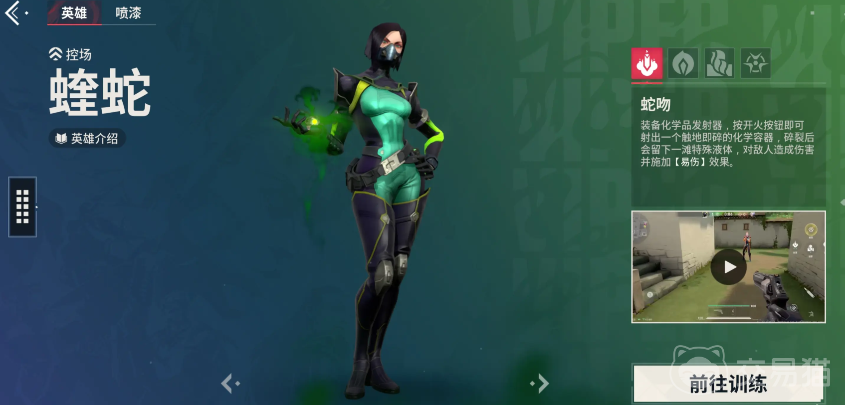 作为控场角色,她擅长使用各种毒气装置,利用这些手段能有效遮蔽敌人视野,削弱对手战斗力,是化学装置的制造大师,技能课对范围和区域进行封锁,能给队伍带来更多样的战术选择和机会。1技能发射触碰地面就碎裂的化学容器,之后遗留一滩溶液,触碰到的敌人不仅受到损伤,同时被挂易伤效果;2技能可装配一个能穿越地形的契气雾喷射器,对一条线路进行部署,消耗燃料就能释放雾气,遮蔽对手职业,能多次反复利用,拥有燃料值就可施放。3技能能生成化学气雾,作用同样是阻挡视野。
