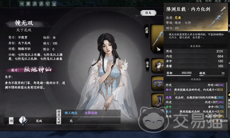 对应的点数以及武功秘籍都获取到之后,玩家就可以去不夜京,在这里可以和镜无双对战,只要能击败这个角色,玩家就能得到天上经,需要注意的是击败对方之后还会有对话,玩家需要在对话的时候询问对方修炼的武功,这样在获得秘籍之后,同时还能招募对方加入到自己的阵营,需要注意的是和角色对战的时候,玩家只能成功,不能失败,否则一旦失败之后就需要重新准备,会浪费玩家大量的时间。