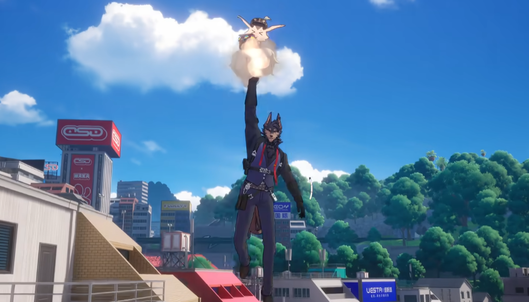 辨识度极高,标志性的黑白挑染头发和个性十足的攻击方式让人印象深刻。普攻前几段是远程打击,最后一段则使用大炮轰击敌人,爆发力强。闪避方式也颇具趣味,普通闪避规避伤害,而长按则会化身小恶魔形态,加快移动速度。瞄准攻击可以吸收怪物的外形与能力,然后通过小技能化身为怪物战斗,机制非常新颖。不过需要注意的是,Boss类敌人无法被吸收。大招则是召唤一辆车从天而降,对范围内敌人造成巨额伤害,是团队作战的强力爆发点。
