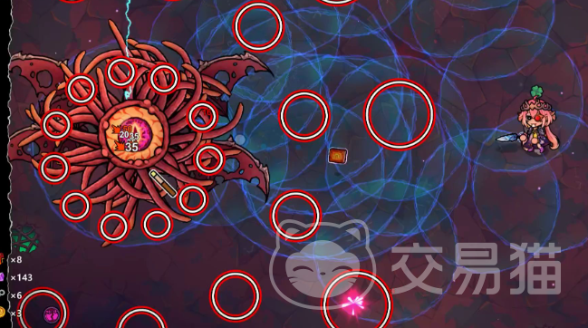 全视之眼共有两种攻击方式,分别是有红点的铁链以及没有红点的铁链,有红点的铁链可以通过打击红点来让铁链断掉,没有红点的铁链无任何方法出现时必须躲掉。其余时间就是出啥技能躲啥技能,直到将boss的血量全部耗掉即可。关底boss是不可名状物,战斗的时候有四种行动模式。第一种是会设计出黑色弹幕,黑色淡墨很容易闪躲,不过弹幕当中会有鬼脸跟随,并且在场上还会停留很久,如果不幸被击中,还会增加被诅咒的buff。