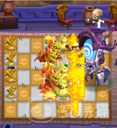 僵尸博士之所以会让大家害怕。主要是有4个技能,例如头部的眼睛闪烁红光时则意味着马上就要发动地震射线。紫黑色的光束也会直接很少整排的植物,此时就需要根据机甲的转向,然后提前做好应对的防御调整。如果看到机甲背部的舱门打开,这就是已经启动僵尸召唤的技能。普通的僵尸还有铁桶僵尸,甚至是生命值比较低时,还有可能会看到爆破僵尸,所以玩家就需要提前布置输出植物去拦截。肩部喷嘴在冒出绿色烟雾时,就会有突然来袭的毒气喷射,此时就会延缓植物攻击的速度。