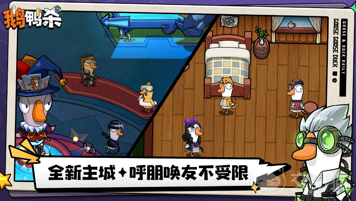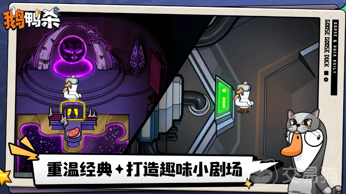 游戏带来了鹅、鸭、中立三大阵营,鹅阵营需协作完成任务并投票驱逐鸭子,鸭子则是要通过暗杀、破坏活动干扰进程,中立角色拥有独特胜利条件,如“呆呆鸟”需被投票出局才能获胜,这就要求大家在选择角色时也得具备策略意识。