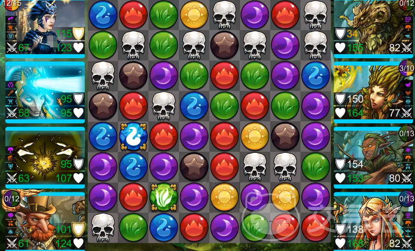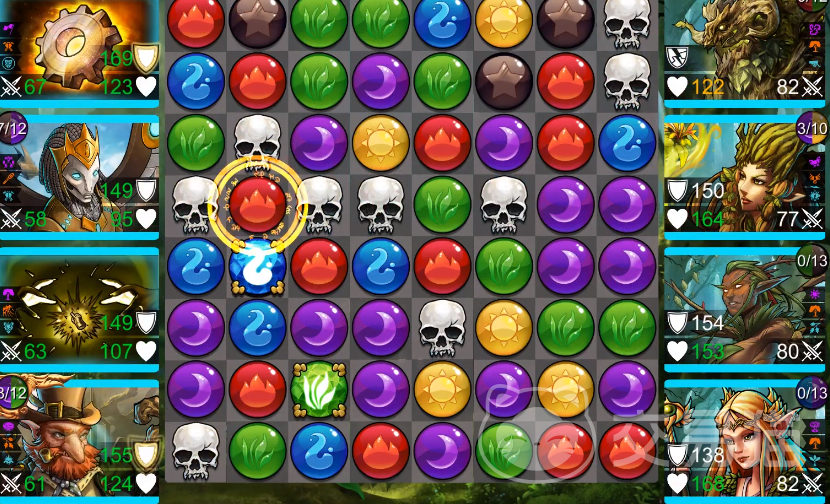 想要有更强的力量,那就可以选择向罗文尼,奴隶还有紫妈,这个阵容可以应对各种不同的对战场景,但相对来说这个阵容比较考验玩家个人的能力,可以根据自己的需求选择不同难度的阵营,作为一个带有三消设定玩法游戏,这个游戏有着大量的随机性,玩家的每一次消除,都会改变当前场景其他道具的位置,每一次消除的选择不同,能带来的战斗力也会有所不同,玩家可以根据实际的需求选择不同的装备技能提升自身能力。