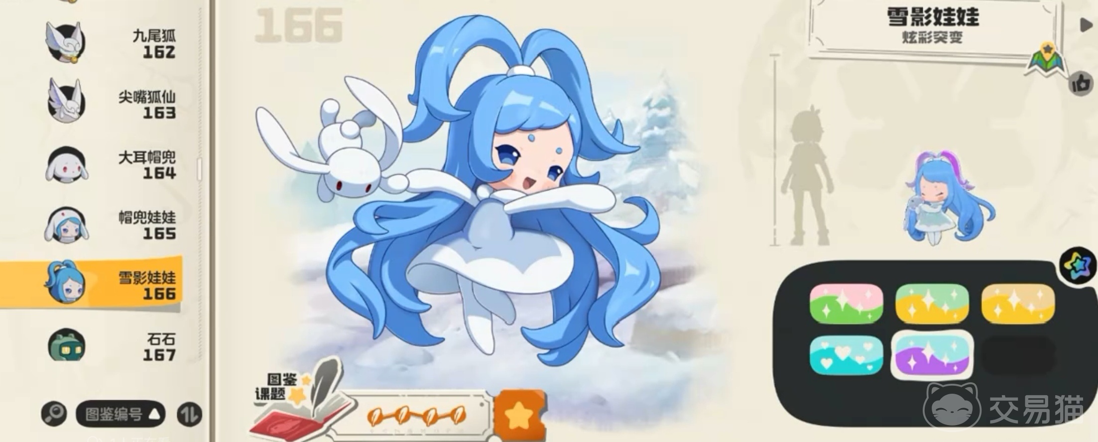 第二位:雪影娃娃 ,它属于冰系中的顶级精灵,种族值高达 679,物理攻击和魔法攻击都很出色。在没有冰洁 buff 时能耗减少,能为敌人施加多层冰冻 buff,造成高额伤害,可在冰原地区捕捉。