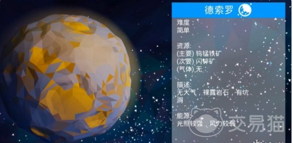 想要获得钨,首先需要知道它的原始形态——钨锰铁矿。这种矿石无法直接使用,必须通过提炼才能转化为可用的钨。目前游戏中,德索罗星球(即月球)是获取钨锰铁矿的主要地点之一。玩家需驾驶小型飞船前往该星球,在着陆后优先建设中型储存设施,并为其配备发电装置,如太阳能板或风力发电机,以保障后续采矿作业的能源供应。