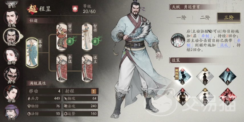 张辽二阶技能在命中三个及以上目标后可再次行动,配合辅助类战法,单回合可实现四次行动,机动性与输出效率大幅提升,三阶降低触发条件,综合价值极高。程昱二阶在牵制目标时发动合击有概率造成混乱,若与刘烨搭配使用,控制链更加完整,战术价值较高。典韦与许褚升阶后属性提升不明显,属于中等优先级培养对象。貂蝉二阶仅增加10点战后意保留值,三阶战法增伤无明确应用场景,整体作用有限,不建议重点培养。