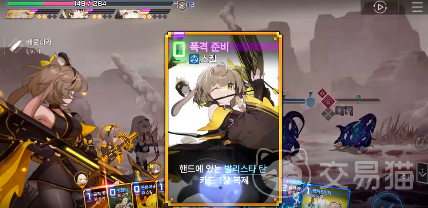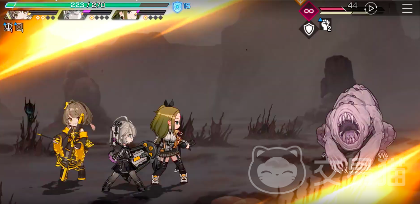 钢铁之雨是一名远程输出型角色,主要依靠弩炮进行攻击,通常部署于队伍后方。她的固有技能可在每回合开始时自动触发,生成一张弩炮卡并对敌方单位造成伤害。玩家常搭配速射卡与闪避卡来增强其作战能力:速射卡可带来100%的伤害输出,而闪避卡则能提供100%的护盾保护,提升生存能力。