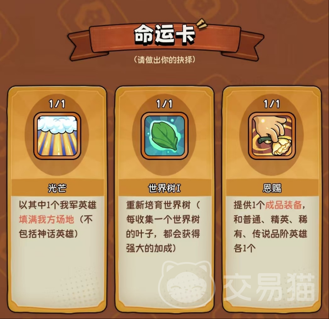 当玩家在对局中抽到世界树命运卡牌时,意味着可以重新培育一棵新的世界树,并通过持续积累叶子来获取属性增益。每一片叶子都能带来包括攻击力提升、防御力强化以及生命值增长在内的多种被动加成。随着叶子数量的增加,整体收益逐步叠加,且不存在上限设定,理论上可形成极为可观的战斗力增幅。然而,由于该卡牌出现时机不可控,若在后期才触发,则可能因时间不足而导致养成不充分,影响最终效果。