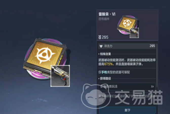 除了芯片之外,“雷酸汞”作为一款功能性插件也表现出色。安装后不仅能提高基础攻击力,还能激活武器的部分被动技能,进一步扩大伤害收益。同时,该插件还具备加快子弹填充速度的效果,使武器在连续交火中保持更高的火力密度。想要获得雷酸汞的玩家,可通过参与游戏内限时活动或完成指定挑战任务来获取,掉落概率可观,是中期进阶装配的理想选择。