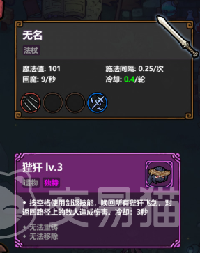 选择狴犴套装后,角色将自动获得一把专属法杖“无名”,该法杖内置两个关键法术:“狴犴飞剑”与“审判”。这两个技能构成该流派的主要输出手段,无需额外获取或升级,开局即具备基础战斗能力。