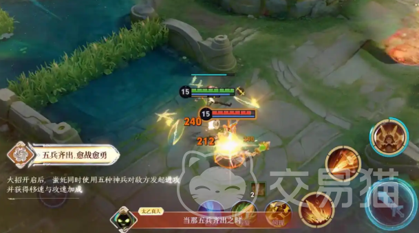 在主动技能设计方面,一、二技能的效果会随当前形态产生差异化表现,而三技能则作为形态优势的集中爆发点。一技能兵势千钧根据形态呈现不同效果:在守御形态下,蚩姹向前挥击,对前方敌人造成伤害并击退,同时回复一定生命值;在攻战形态下,该技能转为位移技,蚩姹向指定方向突进,对路径敌人造成伤害并施加击飞效果。三技能万象归一为蚩姹的核心输出技能,开启后将依次使用五种武器对周围敌人进行连续打击,期间普攻变为可移动释放,同时获得大幅移速与攻速加成。若在超杀形态下释放此技能,攻速提升将突破游戏常规上限,使其成为王者荣耀中首位具备攻速无上限特性的英雄。