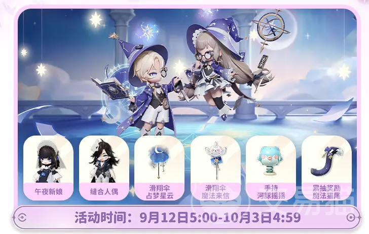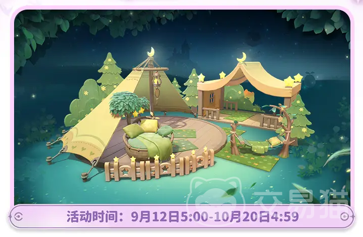 在外观获取方面,9月12日至10月3日期间将上线“魔法之夜”系列盲盒,内含银河占梦师、星夜时光使、午夜新娘等梦幻风格套装,同时支持通过积分兑换专属手持物·河豚摇摇。另一主打家居的“森夜露营”系列,可通过抽取获取奇妙帐篷、月牙吊床等野外主题装饰,丰富玩家的家园个性化布局。