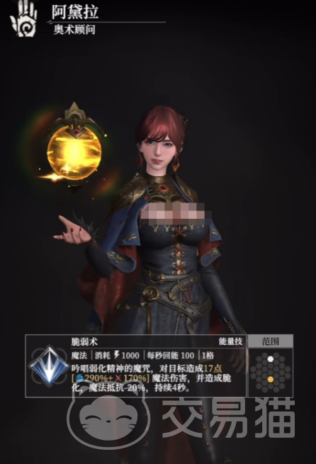 奥术顾问阿黛拉是一名SS级法师职业,在队伍中主要承担增益与能量回复的职责。她的普通攻击“火球术”可对4格范围内的敌人造成基础法术伤害,并额外削减目标35%的物理防御力,为后续输出创造有利条件。虽然普攻伤害不算突出,但其削弱效果在配合高爆发队友时能发挥显著作用。