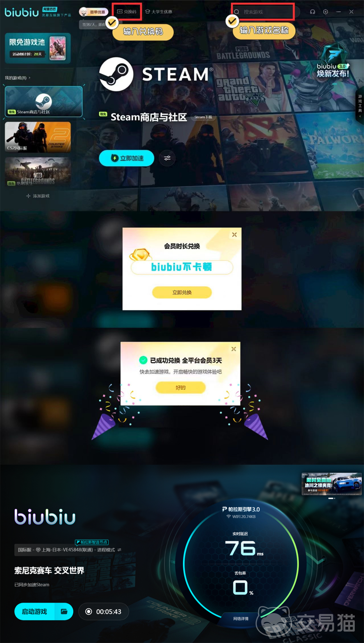 由于该游戏开放的是国际服务器,国内玩家在接入时可能会遇到延迟高、连接不稳定等问题。为此,推荐使用专业级网络加速工具进行优化。新用户注册后可立即获得24小时免费加速时长,作为专属入门福利。同时,所有用户均可通过输入兑换码【biubiu不卡顿】领取额外三天的加速服务,进一步提升游戏体验。该加速工具已在底层架构上完成重大升级,全新帕拉斯3.0加速引擎全面启用,显著增强了数据处理能力与响应速度。此次升级还特别邀请了知名电竞选手Aixleft参与调校测试,确保网络环境达到职业赛事标准,满足高强度对战需求。
