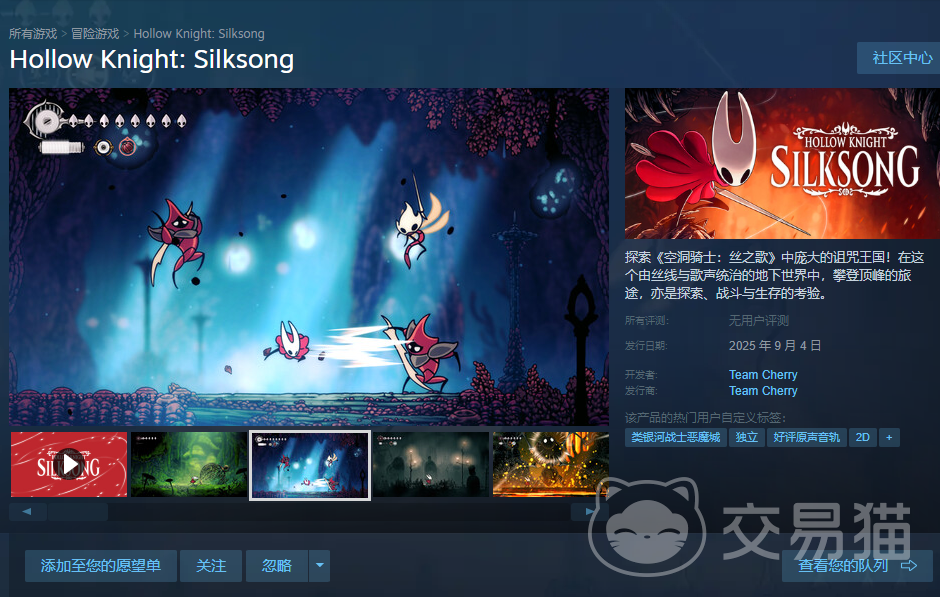 2025年8月21日,开发团队Team Cherry正式公布,《空洞骑士:丝之歌》将于2025年9月4日在PC及各大主机平台同步发售。游戏已全面支持简体中文界面、字幕以及语音内容,并已登陆Steam平台开放商店页面,感兴趣的玩家可提前添加愿望单,以便第一时间获取发售通知与后续更新信息。