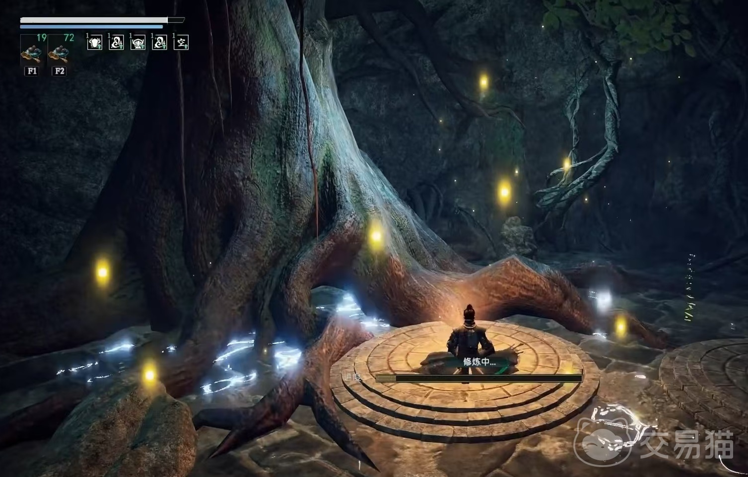 无心地宫坐落于升仙湖地图内,具体坐标位于1144.1356附近。入口被茂密藤蔓遮挡,容易被忽略,需仔细观察周围环境才能发现。进入地宫前,必须先破解门前的五行石阵,这是进入的第一道考验。该阵法由五种代表不同元素的可旋转石块构成,玩家需要通过调整位置,使相生属性的元素依次相连,形成完整的循环链条,方可开启通路。