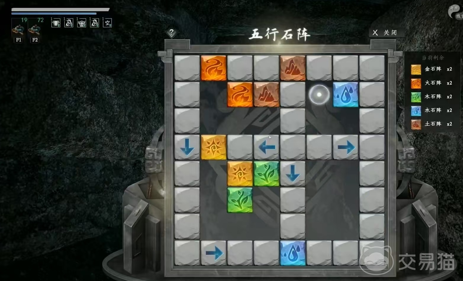 操作时可通过方向键控制光标选中箭头石块,并推动整行或整列同色石块进行位移。当相同颜色的石块相邻排列时,会触发消除机制,清除所有石块后即可成功破阵。此外,按照金→木→水→火→土的标准五行顺序点击石块,也能顺利解开谜题。值得注意的是,每次激活阵法时布局都会随机变化,建议多尝试几次,选择相对简单的配置再推进解密流程。成功后便可进入地宫内部,其结构以主通道为核心,两侧延伸出多个隐秘支路和互动机关。