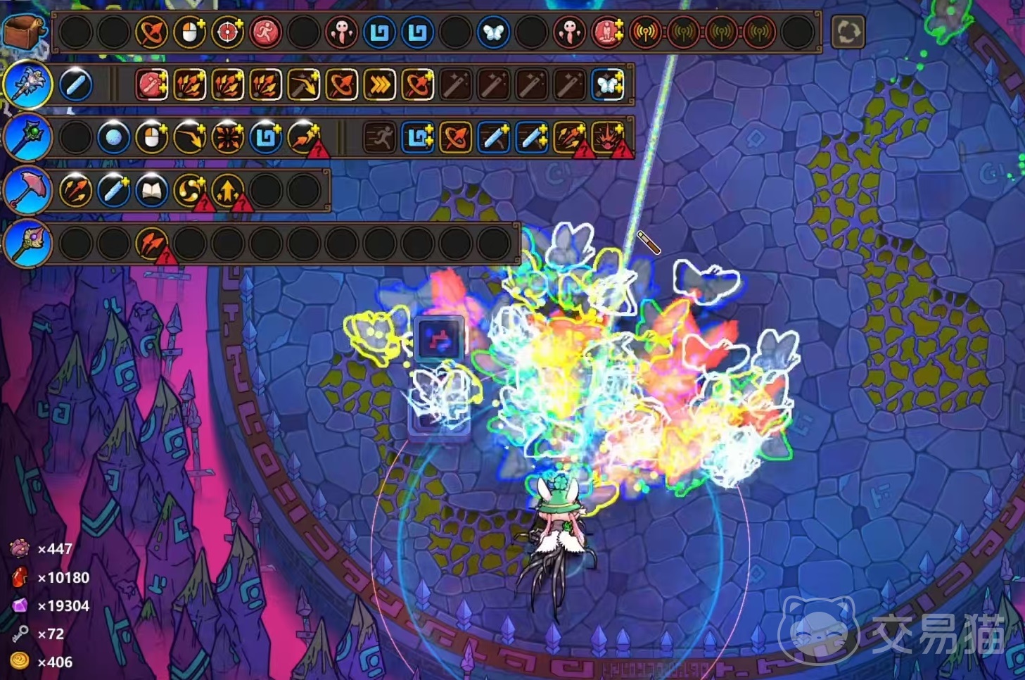 蝴蝶是一种低蓝耗、远射程且具备自动追踪能力的散射型法术,虽然单体攻击速度较慢,飞行轨迹也偏缓,但通过合理的技能协同可大幅提升实战表现。最常见的强化路径是配合分裂与雷霆核心两个辅助技能。其中,分裂能令蝴蝶命中后分裂出更多子单位,扩大打击范围;而雷霆核心则赋予其终结爆炸效果,触发范围伤害。两者结合使用,可在目标区域形成连续多次的连锁爆破,整体输出能力显著增强。