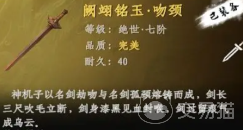首先介绍的是名为“吻颈”的七阶剑,这是一把通过奇遇任务可获取的稀有武器。想要开启该任务,玩家必须先满足一个关键条件:悟性值需达到110点或以上。满足条件后,前往坐标(1026,-38)处的杂货商铺,购买香火道具。随后携带香火前往将军墓,在指定位置点燃即可触发隐藏任务流程。
